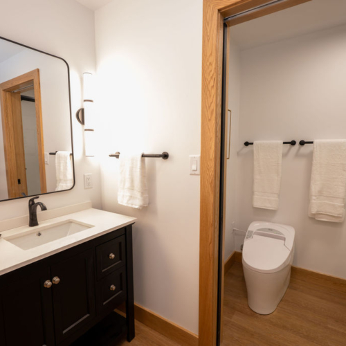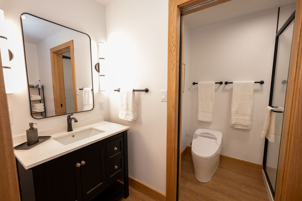 - Private ground level entry to 1-bedroom/1-bath suite with A/C, in-floor heat, and ceiling fans